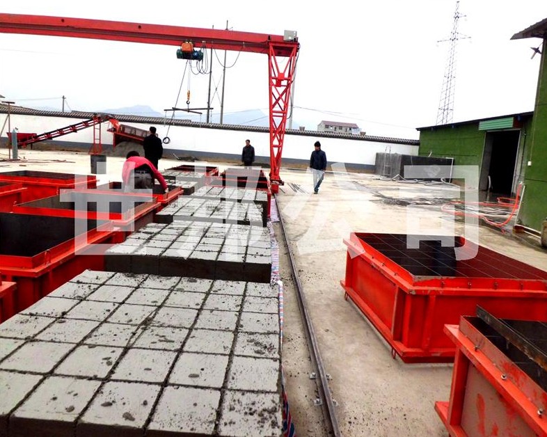 免蒸加氣磚設備、免蒸加氣塊設備生產(chǎn)現(xiàn)場